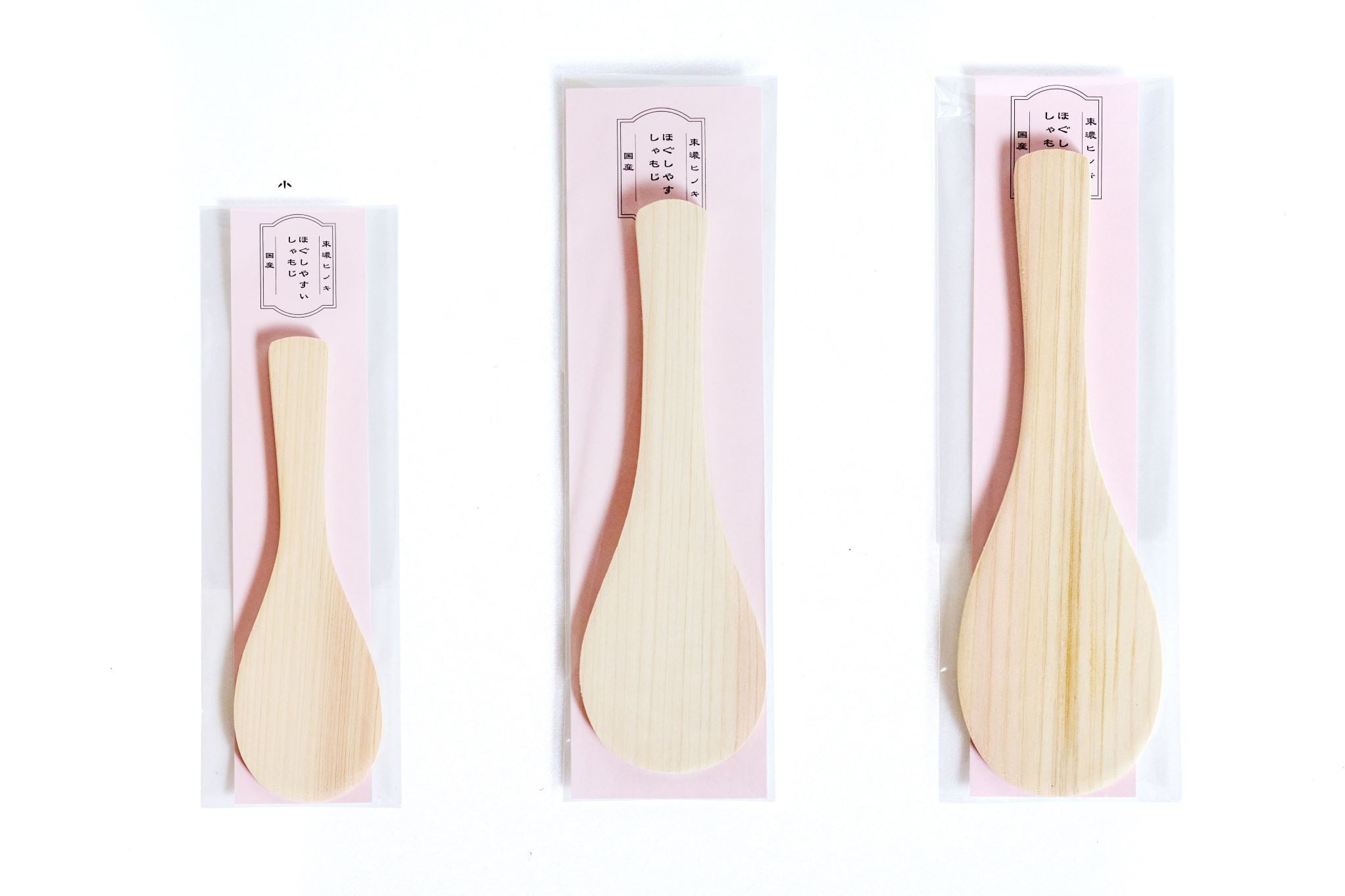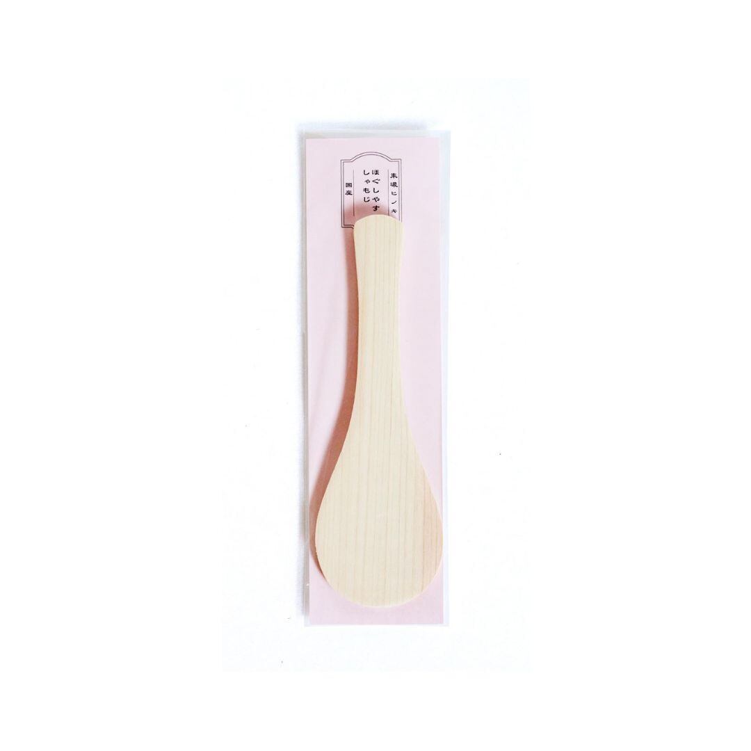 東濃地方と呼ばれる岐阜県南東部の地域を中心に産出される銘木『東濃ヒノキ』を使用した無塗装のしゃもじです。香りの高さと強度の高さが特徴です。