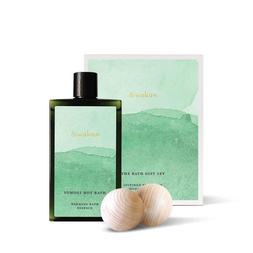 &wakanバスエッセンスとヒノキボール2個のギフトセットのボックスバージョン。